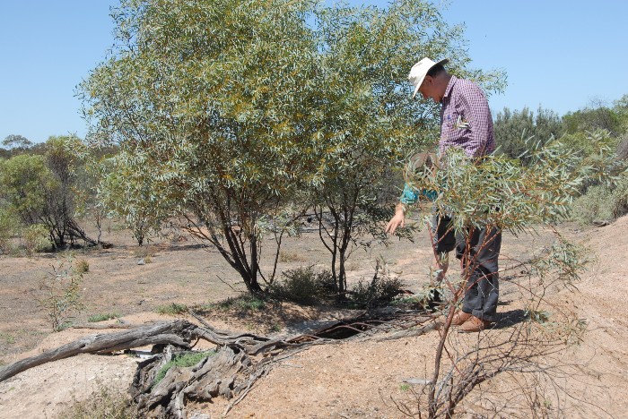 We turned off south-east towards Yerdanie Rock – a pleasant drive through the salmon and gimlet gum forest. A tree had fallen across the track preventing further travel. With all hands to the task it was quickly pushed aside. From the parking area at Yerdanie Rock it was a short walk to the site where a well was located in a thicket of trees and shrubs.