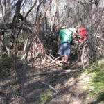 We roamed around and found two wells and a dam. The dam looked authentic Hunt, but the wells didn’t. One wasn’t stone lined or built in Hunt’s traditional construction style and the other was stone lined but was far too narrow and didn’t taper in as it went deeper. We spent some time wandering around the area looking at the railway dam and water harvesting system.