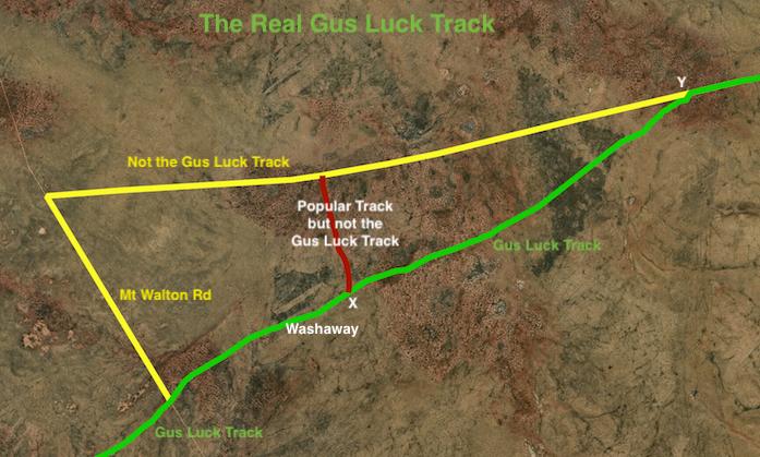 The Gus Luck Track Track finishes at Goongarrie on the Goldfields Highway. Note that other sources suggest that the Track finishes at Menzies (see below).