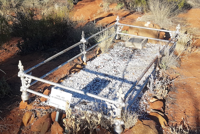 “This unknown man died at this waterhole and was buried here by Albert Ives and son Len in year 1910”.