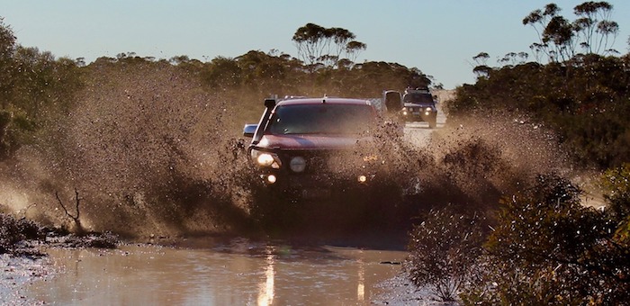 The unmaintained Mt Palmer Track is hardly worth a mention for most of the year but after prolonged rain it presents a challenge. Heading south from the Great Eastern Highway there is what seems like a never-ending series of long stretches of water, bogholes and slippery, muddy dirt track.