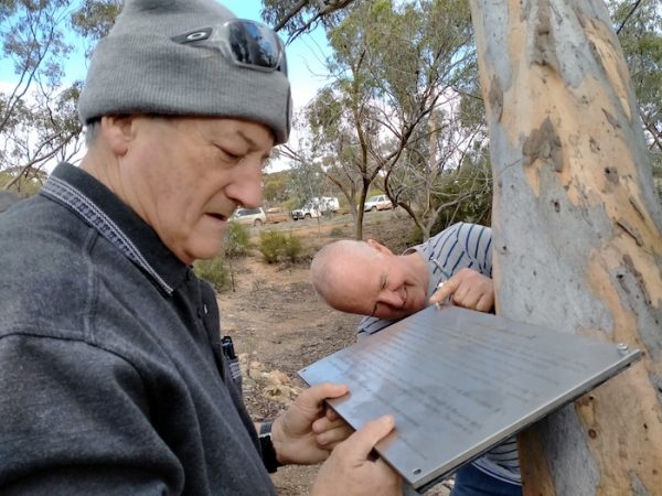 Re-positioning of an incorrectly-located, well-marking plaque is probably of real interest to only the aficionados of such a recondite subject, however, this undertaking attracted 9 people to engage in a 3.5 day, 1000+ kilometre Road Trip from Cockburn to Boorabbin and return.