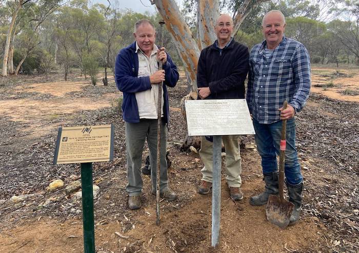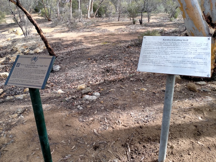 The plaque that was re-located is one of 26 created for the York to Goldfields Heritage Trail. It was to mark the location of a dam at Karalee Rock made by explorer/surveyor Charles Cooke Hunt in 1865. The installation of these plaques was part of Australia’s 1988 Bicentennial celebrations.