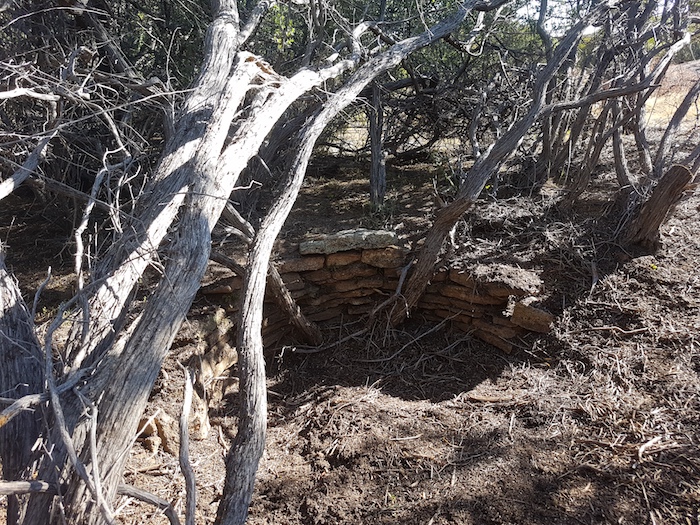The well is on the west of the main rock, between that and a smaller portion of the rock, about 80 metres off the Track.